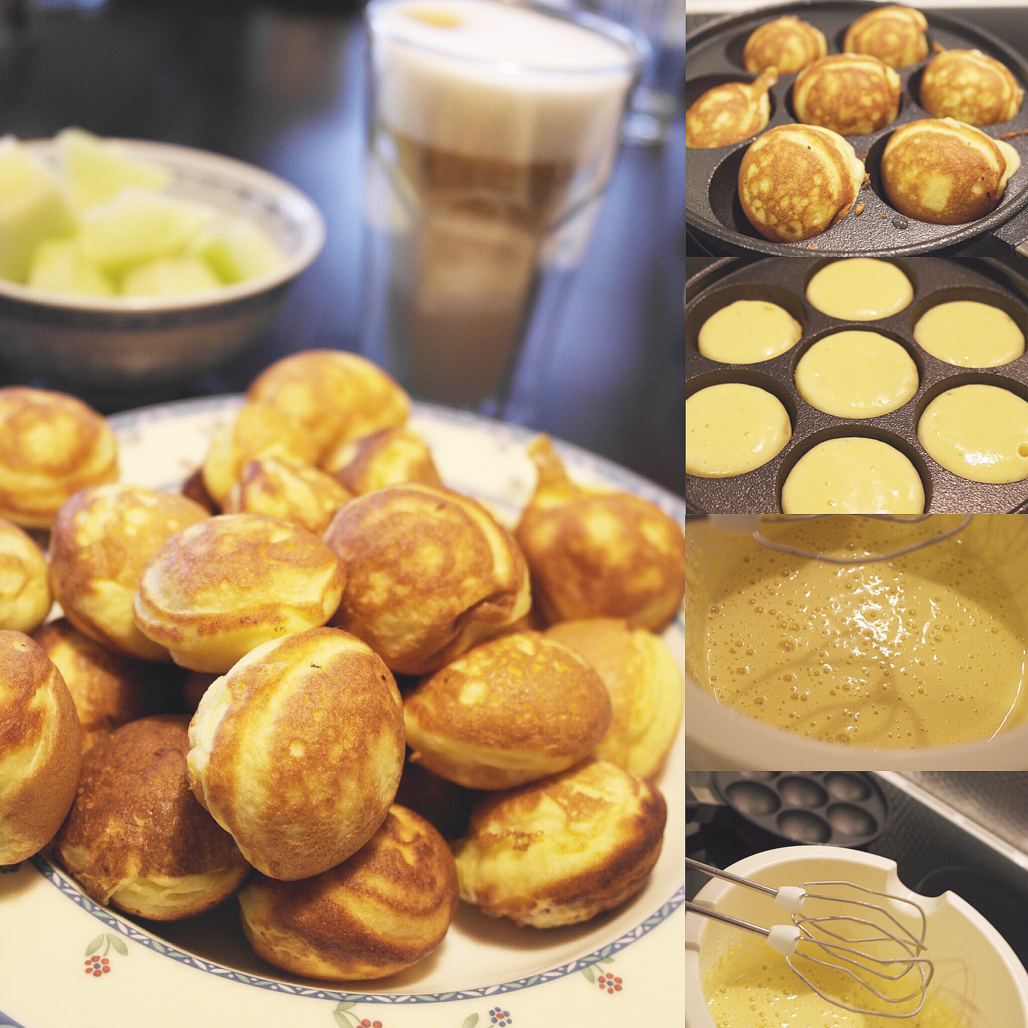 3. Nun das Poffertjespfännchen erhitzen (max. auf die Hälfte der Maximaltemperatur, lieber vorsichtig anfangen, war heute morgen etwas zu ungeduldig und habe das Pfännchen zu heiß gemacht, da sind die ersten Poffertjes etwas dunkel geworden)