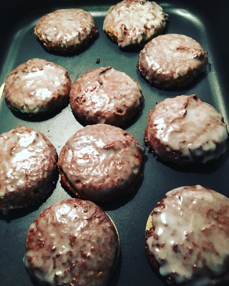 - Nach Belieben nach dem Backen mit Zuckerguss oder Schokolade bestreichen.